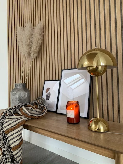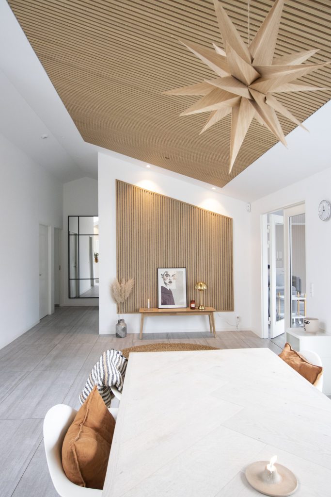 C’est alors que nous avons découvert WoodUpp et décidé de commander des échantillons de couleurs pour trouver le ton de bois parfait qui s’harmoniserait avec notre maison. Nous avons fini par tomber amoureux de cette teinte lumineuse, qui s’intègre parfaitement dans notre pièce bien éclairée. Les panneaux ajoutent une touche de chaleur et de nature, s’harmonisant parfaitement avec l’esthétique générale de notre espace.