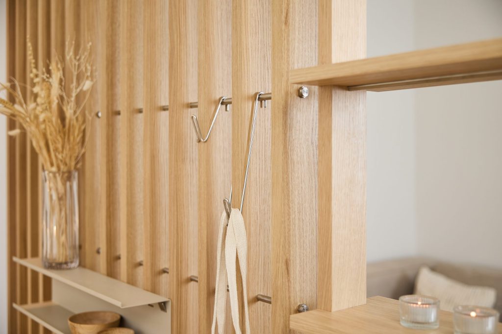 Fabriqué en placage de chêne naturel et en acier inoxydable brossé, BM1 crée une séparation et une structure claires. Vous pouvez ajuster la configuration, reconfigurer l’agencement et ajouter des accessoires au fur et à mesure que vos besoins évoluent.