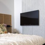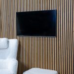 Le support TV maintient votre téléviseur à seulement 10 mm des panneaux Akupanels, de sorte qu’il semble faire partie intégrante de la pièce sans qu’aucun élément encombrant ne dépasse.