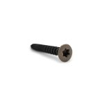Vis WoodUpp présentée sur fond blanc : une vis unique à tige filetée noire et tête plate brun sable, avec empreinte en étoile (Torx). Filet profond et contraste de finition visibles, aspect robuste et finition soignée; produit WoodUpp destiné aux fixations pour bois.